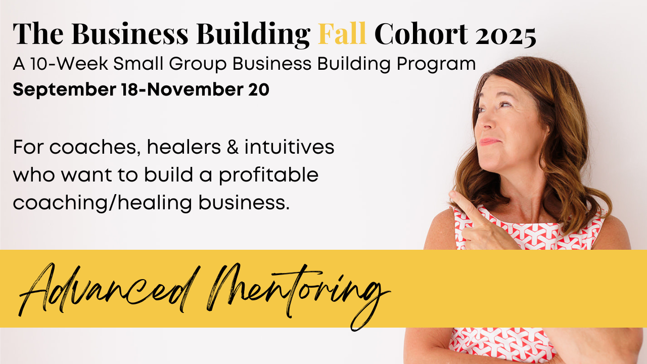 The live coaching calls meet every Thursday 1:00-2:30 pm ET starting Sept. 18. These calls will be a strategic mix of setting your goal, creating your business strategy, creating and implementing your action steps, tweaking when necessary combined with inner work coaching to bust through any resistance to being seen, heard and paid.